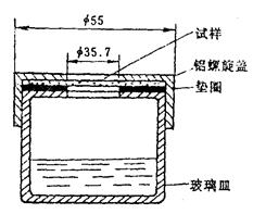 量取30 ml蒸餾水置於皿內,依次放上橡皮墊圈、試樣,然後將鋁質螺旋蓋上緊,不得漏氣,再於天平上稱重。然後將試驗皿放入盛有比重為1.84的濃硫酸的幹燥器中(幹燥器直徑為25 cm),再將幹燥器置於20±l℃的空氣中,靜置24小時後再稱量。